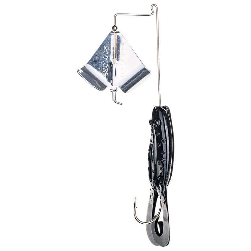 Iscas da marca Strike King modelo Spinnerbaits Tri-Wing Mini Buzz na cor preto, especial para a pesca do robalo e dos predadores.