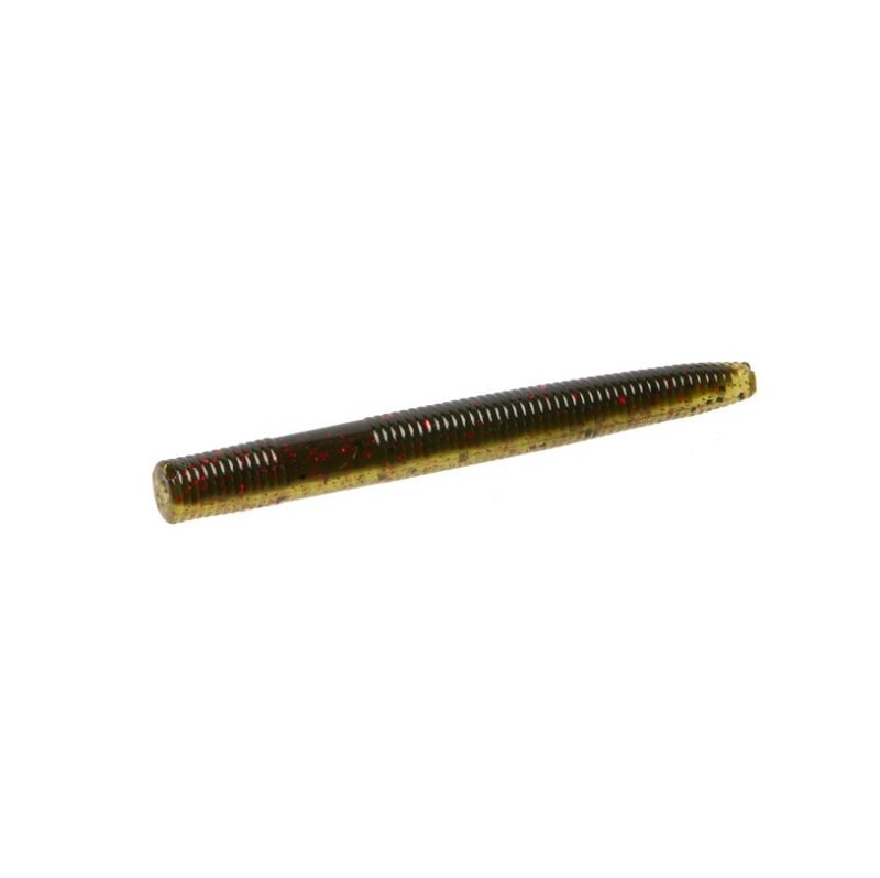 Vinil stickbait em forma de minhoca de 85 milímetros da marca Zoom modelo Beatdown cor castanho. Trata-se de um isco fino, macio, de longa duração e de ação rápida. Está impregnado de sal.