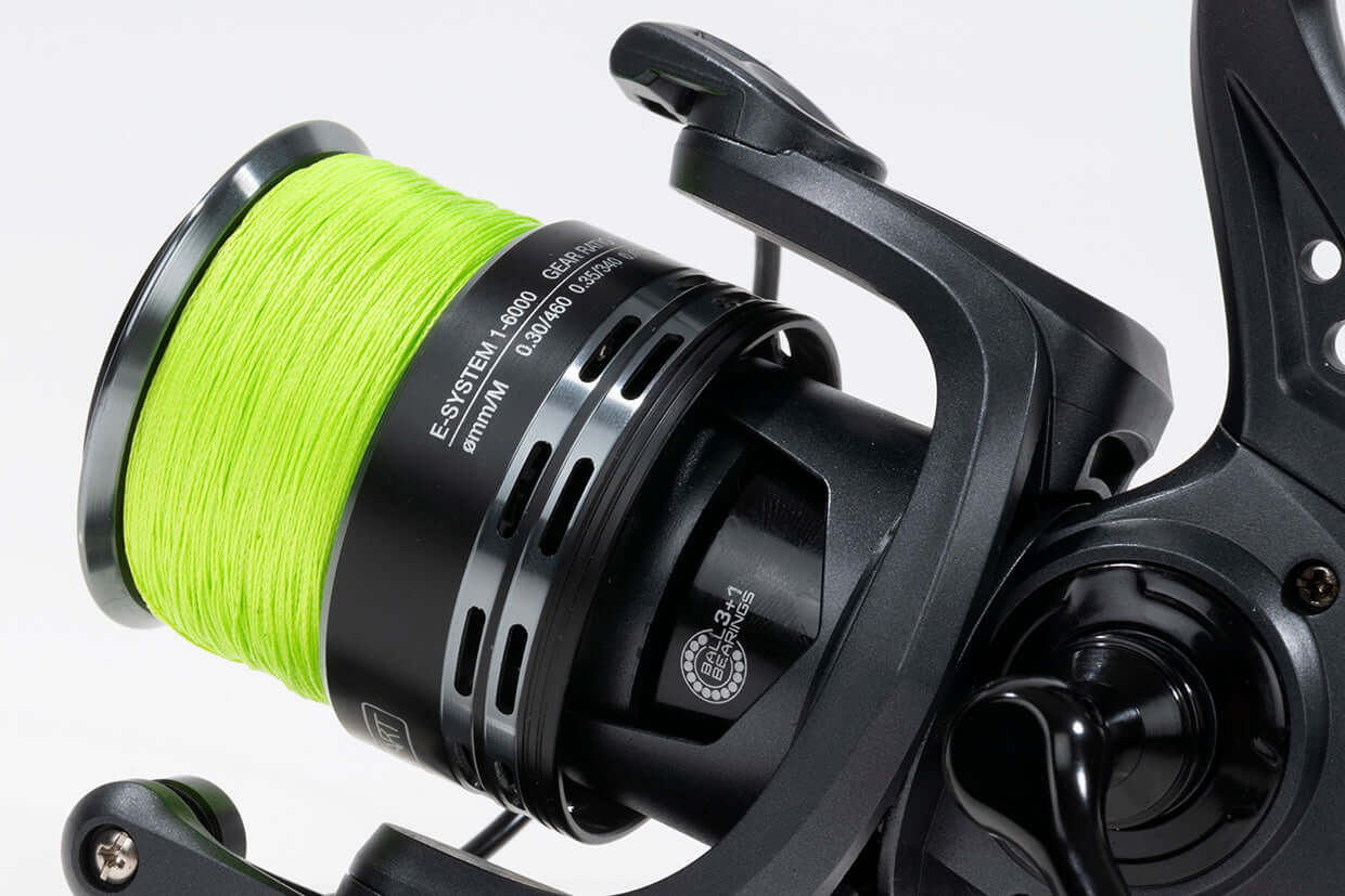 Carreto de spinning da marca Hart, modelo Bogus, na cor preto y verde, especial para a pesca do black bass e dos predadores.