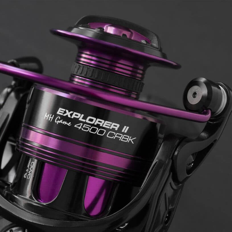 Carreto de Spinning da marca Cinnetic modelo Explorer II MH Game 4500 CRBK, em design laranja e preto, especialmente para a pesca do robalo.