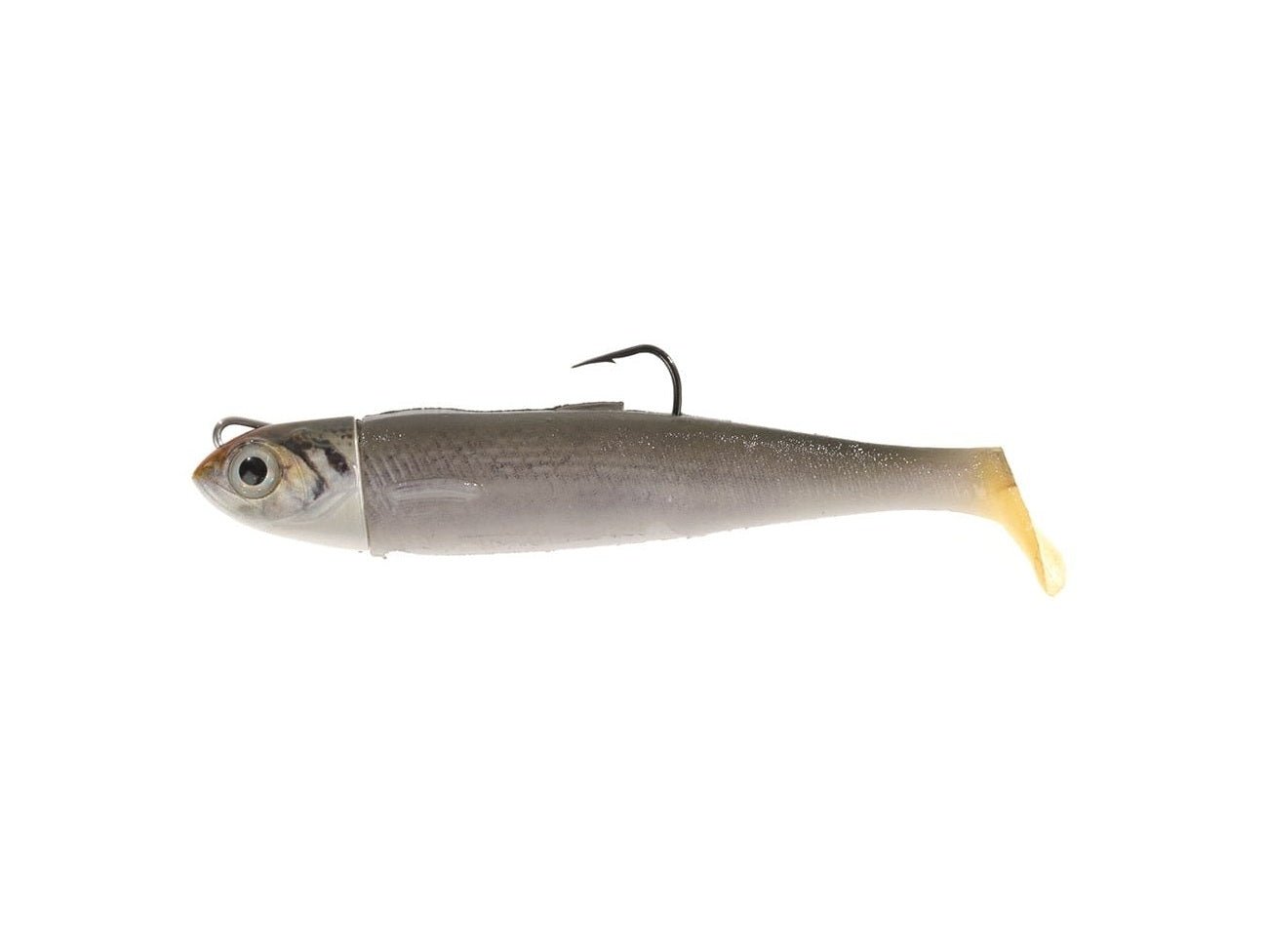 Isca da marca Hart modelo PEPE de 80 milímetros na cor cinza prateado natural, especial para pesca de robalo e predador.