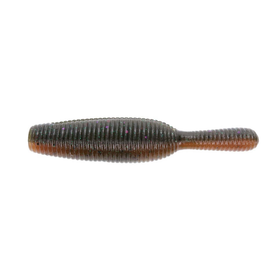 vinil em forma de verme de 63,5 mm da marca Yamamoto modelo Yamatanuki a cores castanho com manchas roxo e verdeespecial para a pesca do black bass e dos predadores.