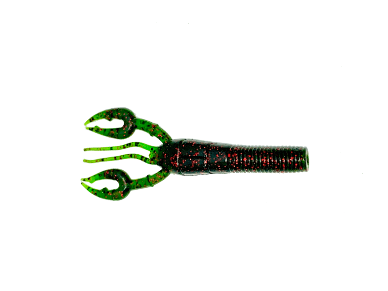 Vinil em forma de caranguejo de 95 milímetros da marca Yamamoto modelo Fat Baby Craw na cor melancia com pintas pretas especial para a pesca do Black Bass.