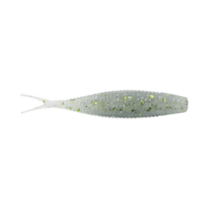 Vinil em forma de peixe de 76 mm da marca Yamamoto modelo Âmbito Shad a cores cinzento com manchas verdesespecial para a pesca do achigã e dos predadores.