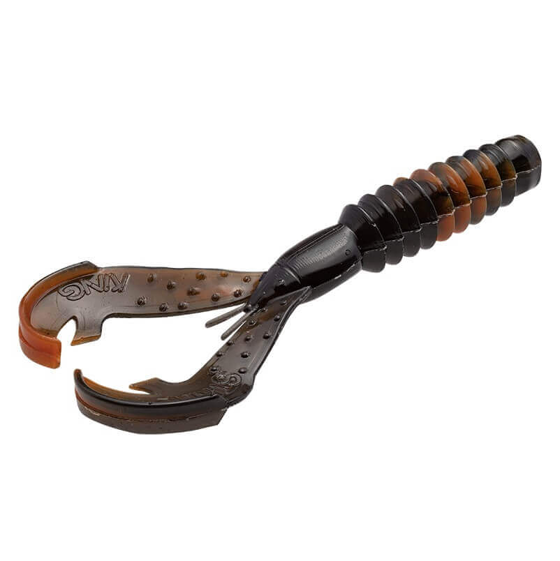 Isca imitação de caranguejo em vinil de 70 mm da marca Strike King modelo Ned Craw a cores castanho, especial para a pesca do robalo e dos predadores.