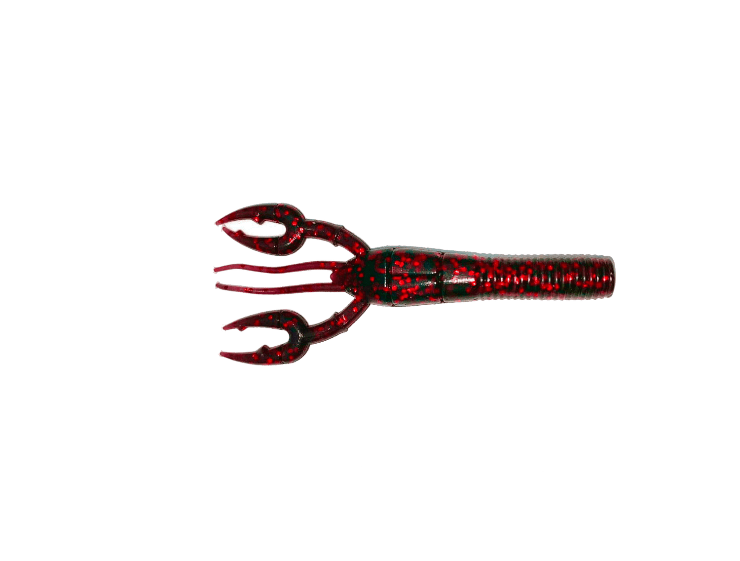 Vinil em forma de caranguejo de 95 milímetros da marca Yamamoto modelo Fat Baby Craw, na cor preto com riscas vermelhas, especialmente para a pesca do Black Bass.