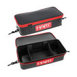 Saco semirrígido da marca Hart com divisórias em preto e vermelho, especial para a pesca do robalo e do predador.