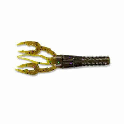 Vinil em forma de caranguejo de 95 milímetros da marca Yamamoto modelo Fat Baby Craw na cor verde com riscas pretas, verdes e roxasEspecialmente concebido para a pesca do robalo e dos predadores. Tem um corpo redondo e garras. Está impregnada de sal.