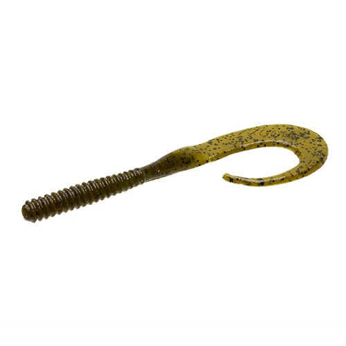 Vinil com a forma de um verme fino de 203 milímetros da marca Zoom modelo Grande campainha morta a cores verde com manchas verdes. Trata-se de um verme anelado de corpo curto, com uma grande cauda nadadora encaracolada que permite mover a água e atrair a atenção dos peixes. Está impregnado de sal.